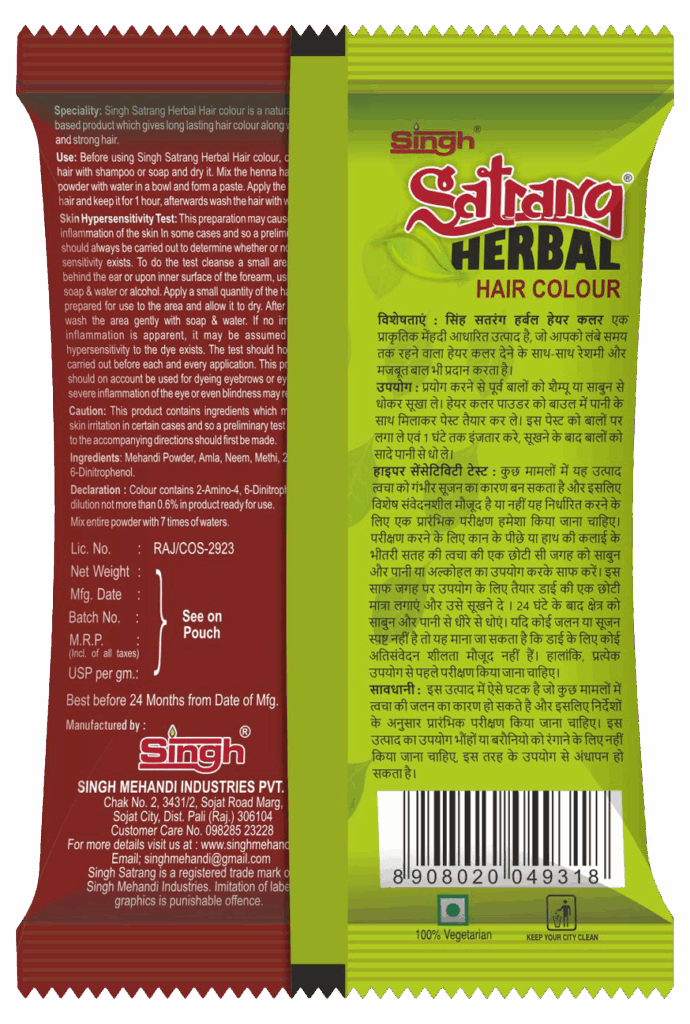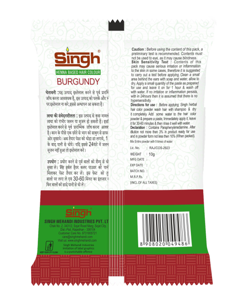 By choosing Singh Satrang’s herbal burgundy dye, you can achieve a trendy, eye-catching look while benefiting from the time-honored properties of Ayurveda, ensuring your hair remains healthy, shiny, and beautifully colored.