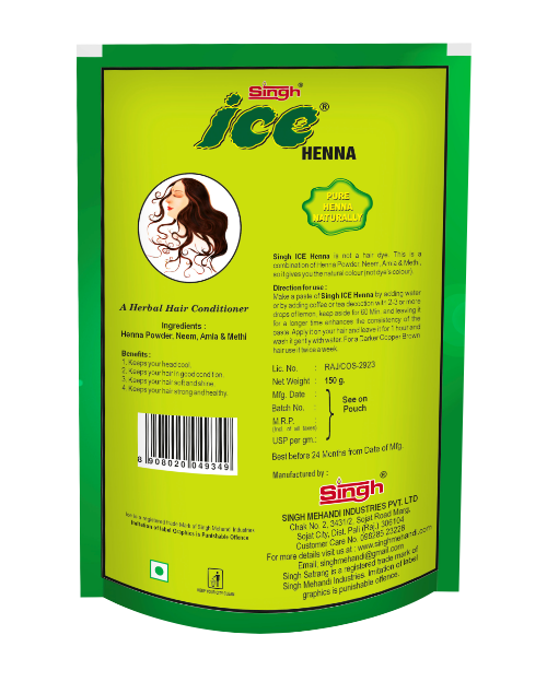 Quality Information : Singh Ice henna is not a hair dye. This product gives your hair a natural color and not a dye color.